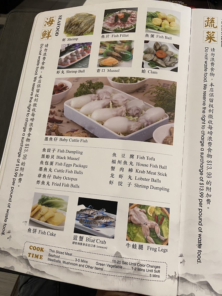 Shrimp, octopus, krab stick, mussel, lettuce, scallions. Thai chili.